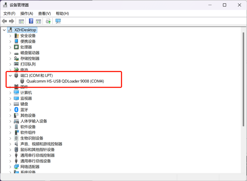 进入9008之后,在设备管理器的端口中就能看到9008端口了