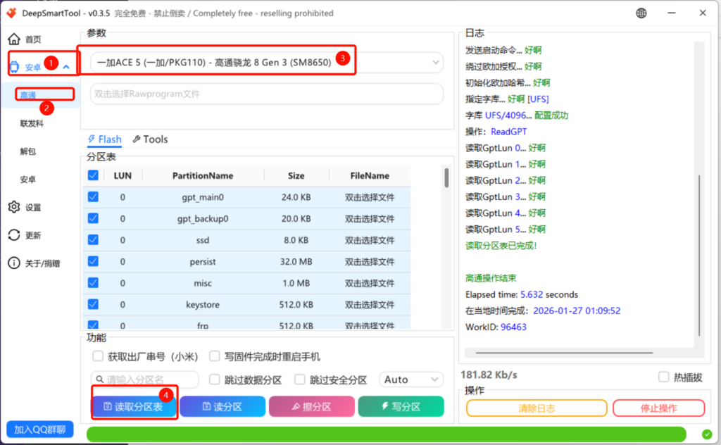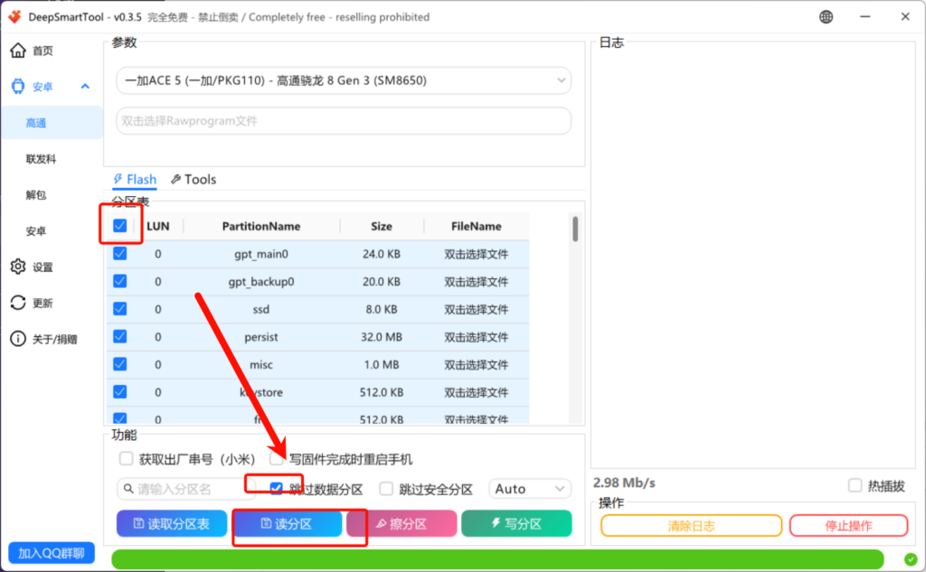 全部勾选之后选择读分区,会在设置中的回读路径中以时间命名的文件夹中保存全部分区备份