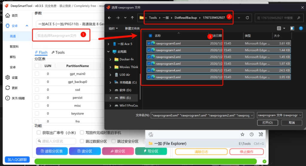 之后按提示打开rawprogram*.xml,这个文件是备份过程中程序自动生成的