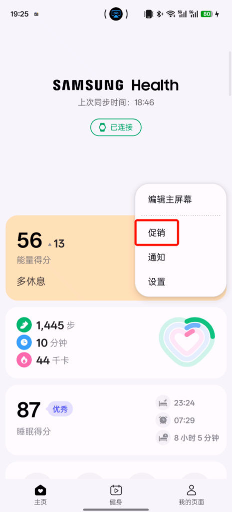 此时打开三星健康也会自动连接上