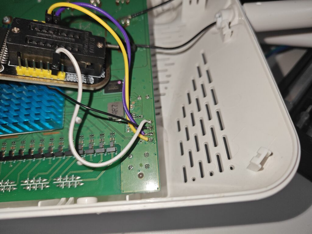 拆开之后在主板的一角就能看到ttl点位了,这里从上往下分别是vcc,gnd,tx,rx