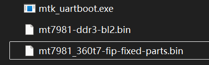 .\mtk_uartboot.exe -s COM11 -p .\mt7981-ddr3-bl2.bin -a -f mt7981_360t7-fip-fixed-parts.bin --brom-load-baudrate 115200 --bl2-load-baudrate 115200