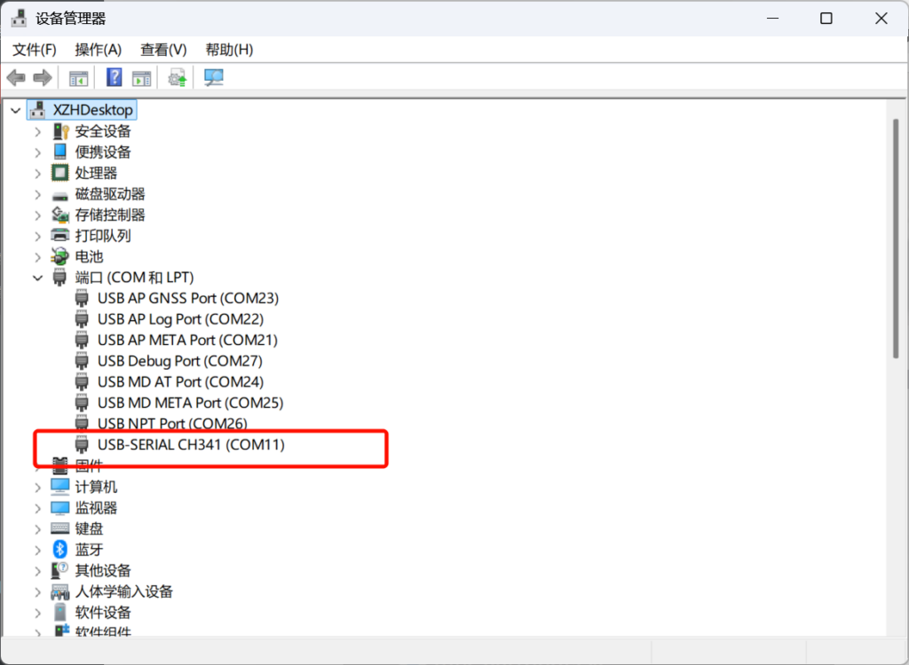 将编程器插入,打开设备管理器,查看编程器的端口号