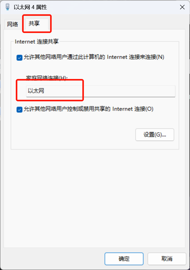 - 这里选择你要共享的接口,然后点击设置